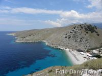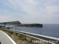 Poblíž jednoho ze zmiňovaných silničních pomníčků jsme zastavili u kapličky (a hřbitova z druhé strany silnice), odkud se nám otevřel první pohled na nádherný Palermský záliv, v němž za Hodžovy vlády bývala uvnitř hory ponorková základna. Do ní se vjíždělo tunelem. V jižní části zátoky stojí na ostrově spojeném s pevninou úzkou šíjí pevnost Ali Paši Tepelenského (z tureckého pověření vládce jihu Albánie) z počátku 19. století. Následovaly další překrásné partie zatím minimálně zastavěné Albánské riviéry.