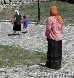 Z Beratského hradu byl zase výhled na pohlednou horu Tomorri, na kterou se každoročně v srpnu sjíždějí bektašiové ze všech stran na velikou slavnost. (Bektašiů je 120 milionů!) Upečeny jsou stovky (možná víc) ovcí. Přestože jsou bektašiové muslimové, nic si neodpírají, včetně alkoholu.