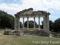 APOLLONIE, založená v 6. století př. n. l. řeckými kolonisty z Korintu, byla jedním z nejdůležitějších měst svého období. Prohlédly jsme si archeologické naleziště uprostřed olivového háje, ovšem zbytky antického města se rozkládají na mnohem větší ploše a tu a tam vykukují mezi dnešním osídlením. (Sloup je Apollonův, z toho název města.)
